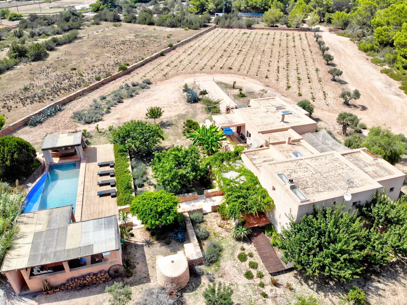 From this unique property, the near village San Francisco offers invites you to stay and spend an evening before heading back to your private retreat. The beach of Cala Saona and Migjorn are easily accessible by car.