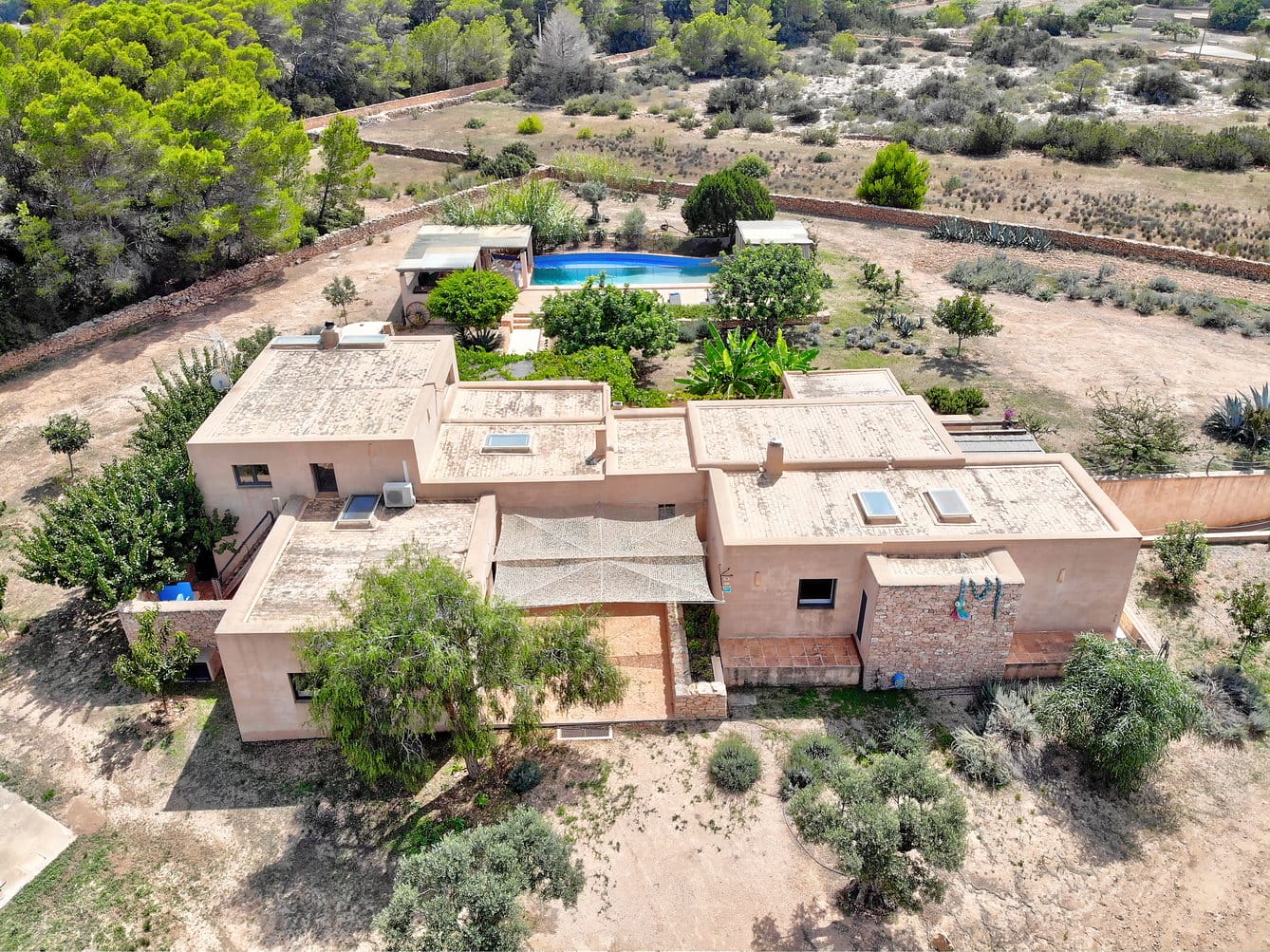 Home of a local artist, it has been designed and built reflecting the traditional style of the island, creating a spacious and comfortable home that enjoys great privacy either inside or in the adjoining terraces around the pool.