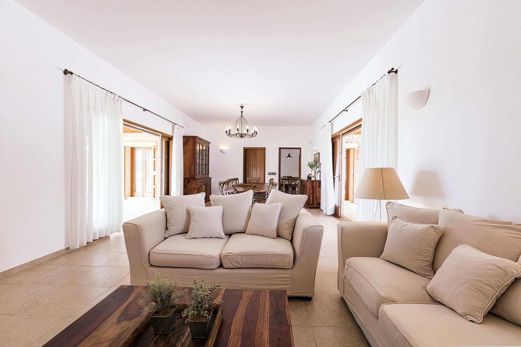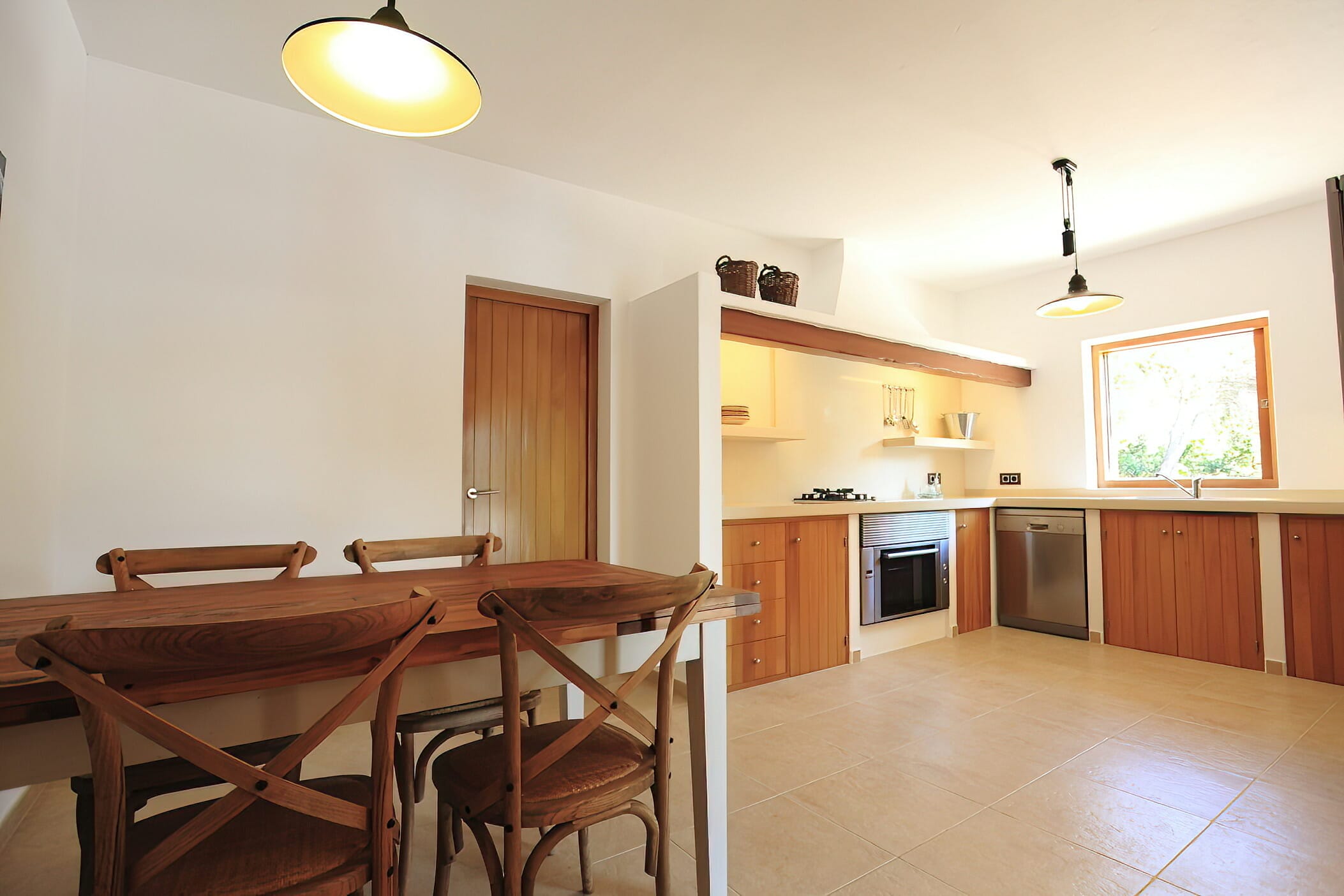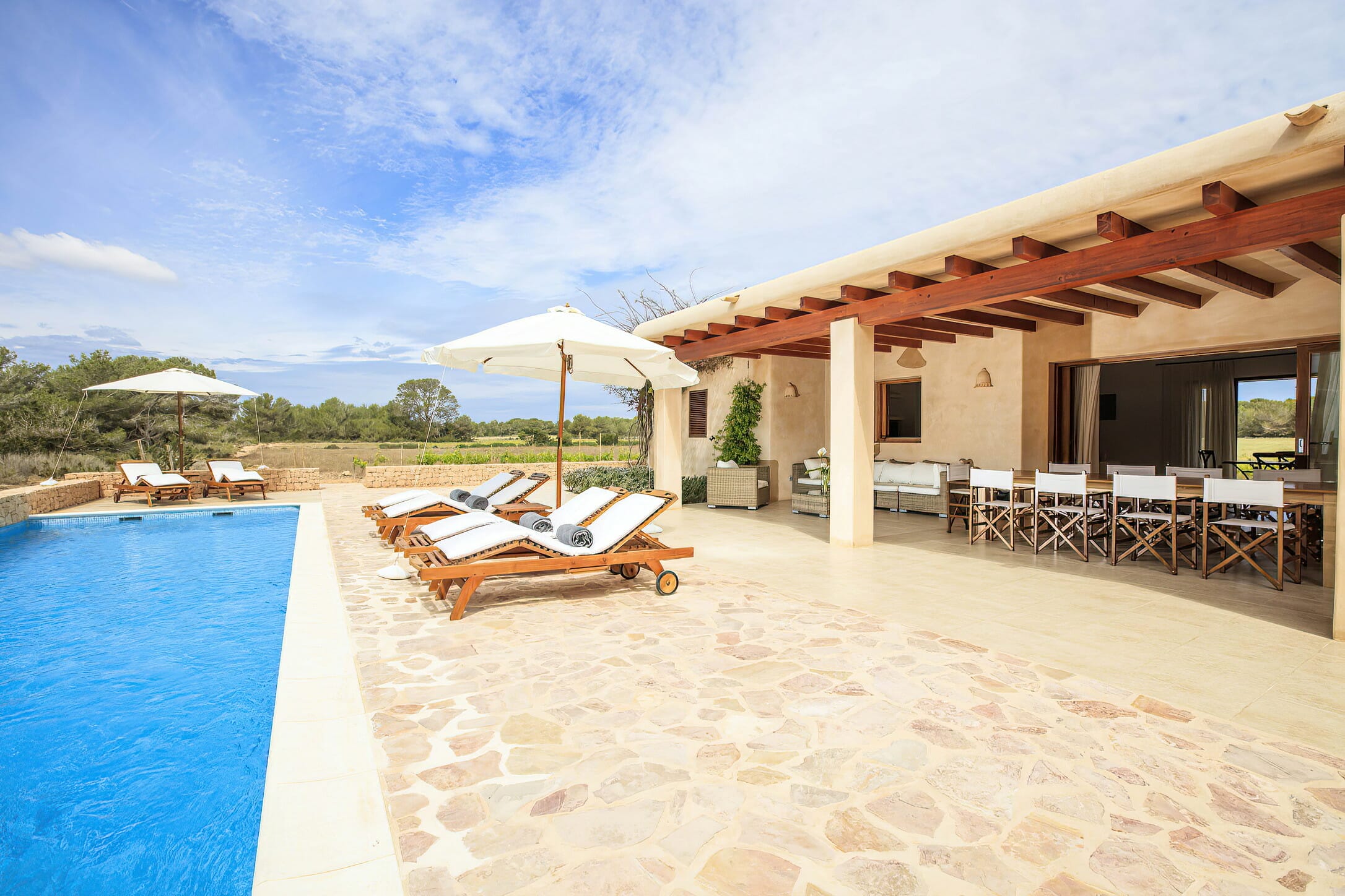 There is a lovely pool and shady areas in the yard where you may unwind while inhaling the familiar fragrances of junipers and rosemary. A wonderful stretch of sandy Migjorn beach is just a short walk from the property.
