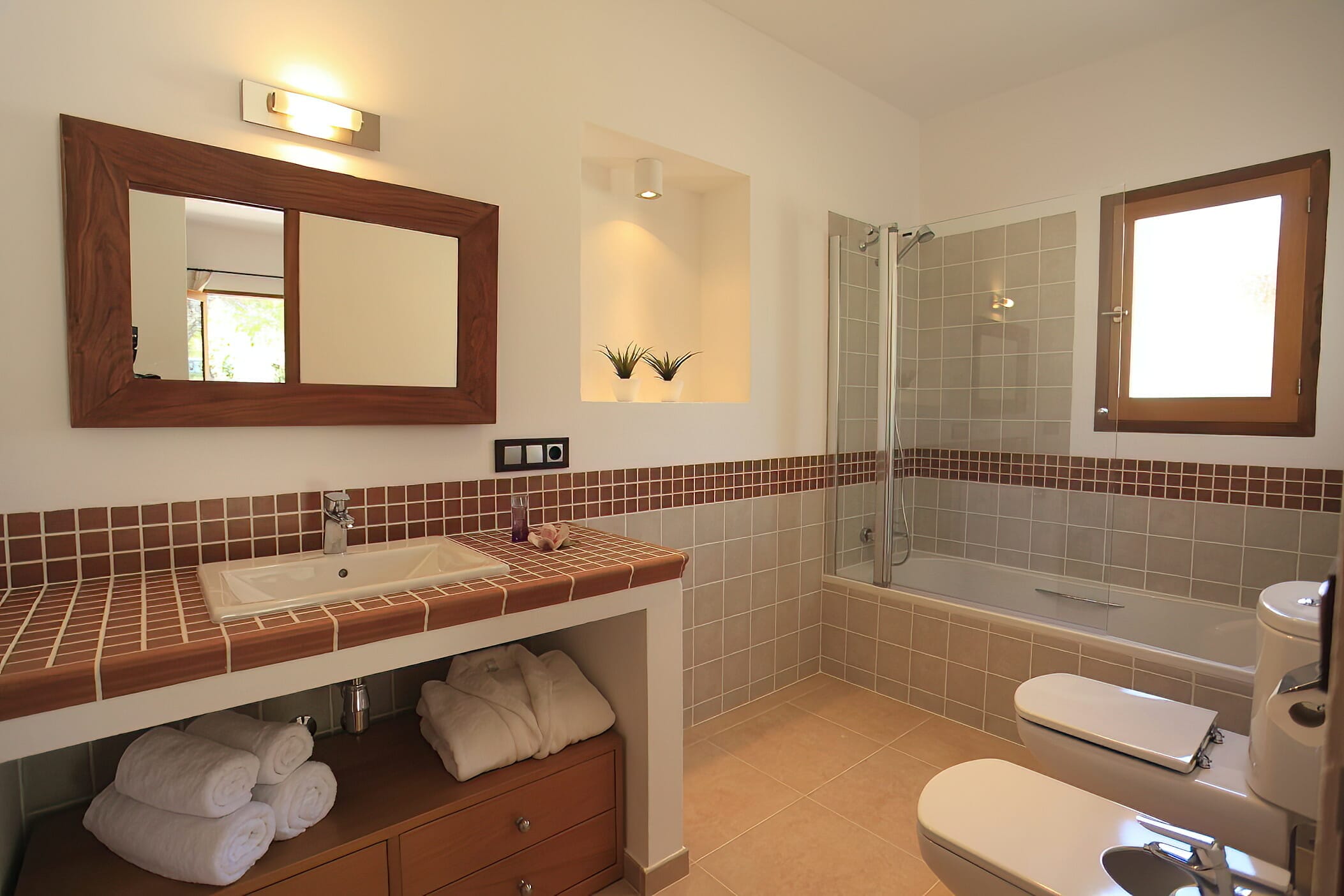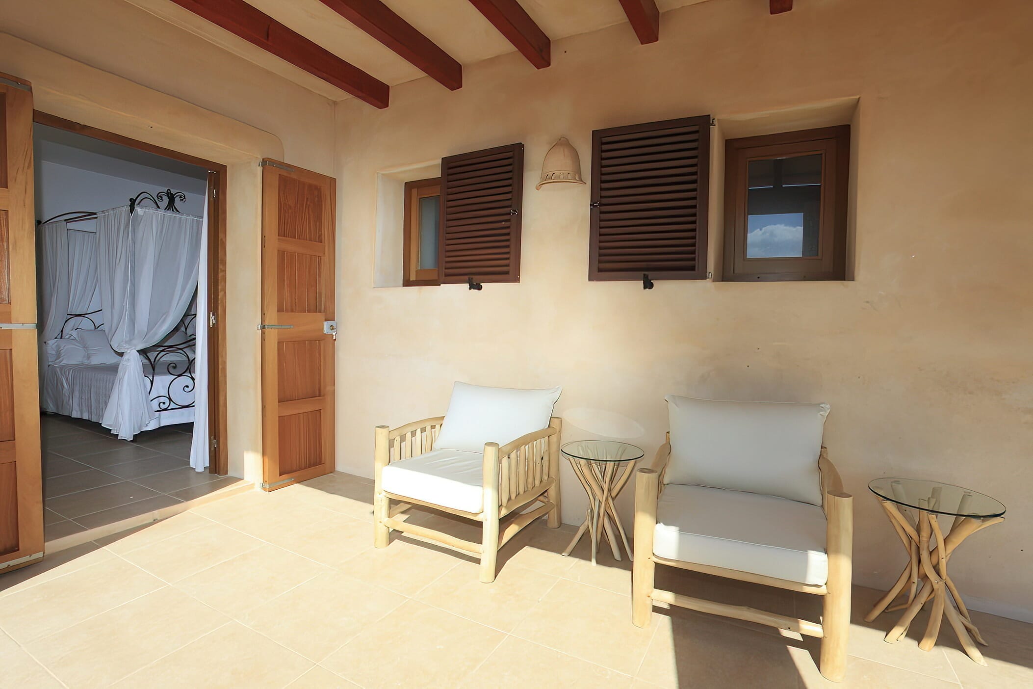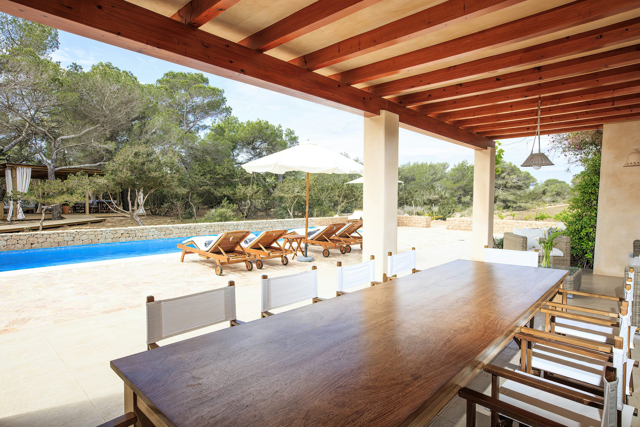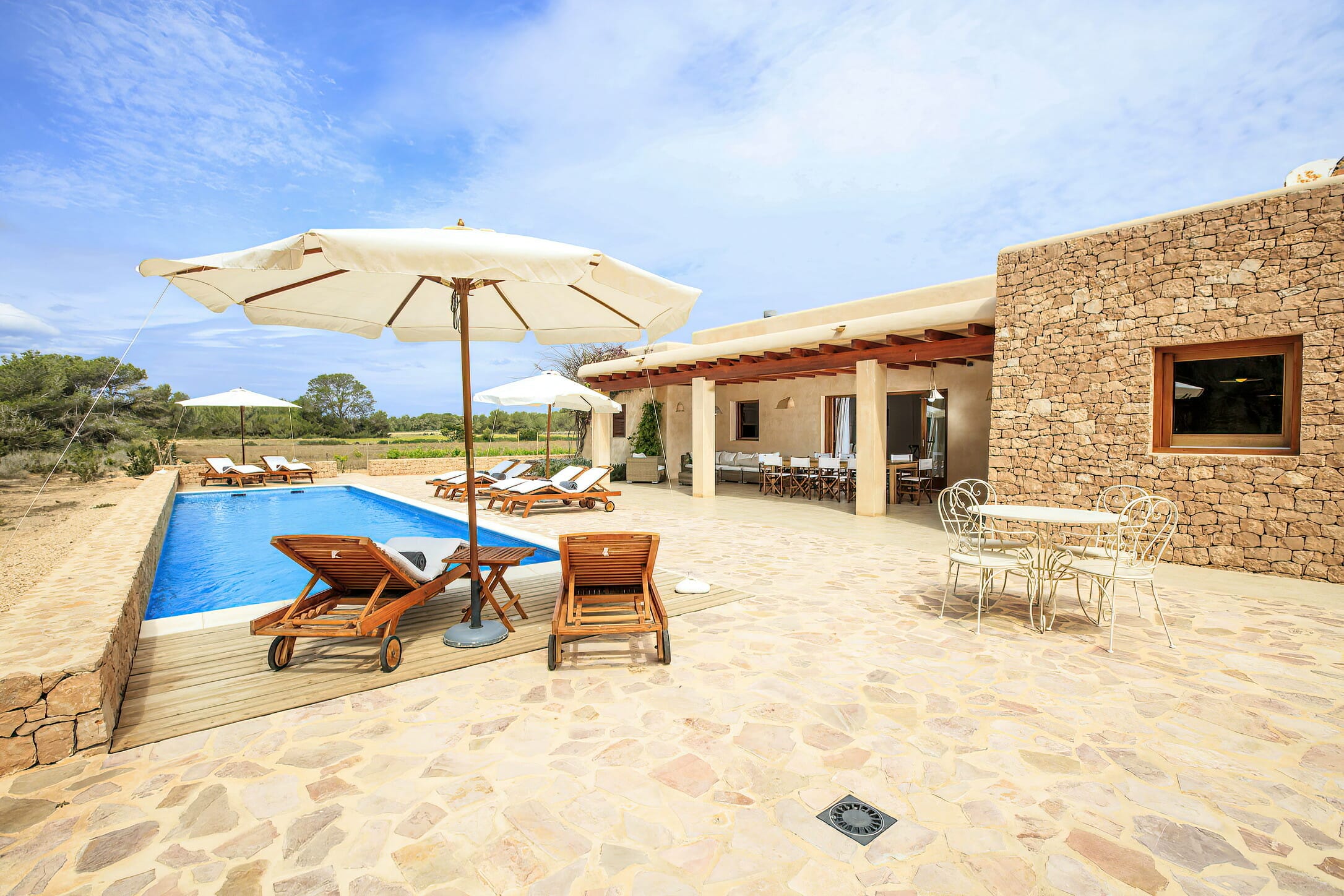 There is a lovely pool and shady areas in the yard where you may unwind while inhaling the familiar fragrances of junipers and rosemary. A wonderful stretch of sandy Migjorn beach is just a short walk from the property.