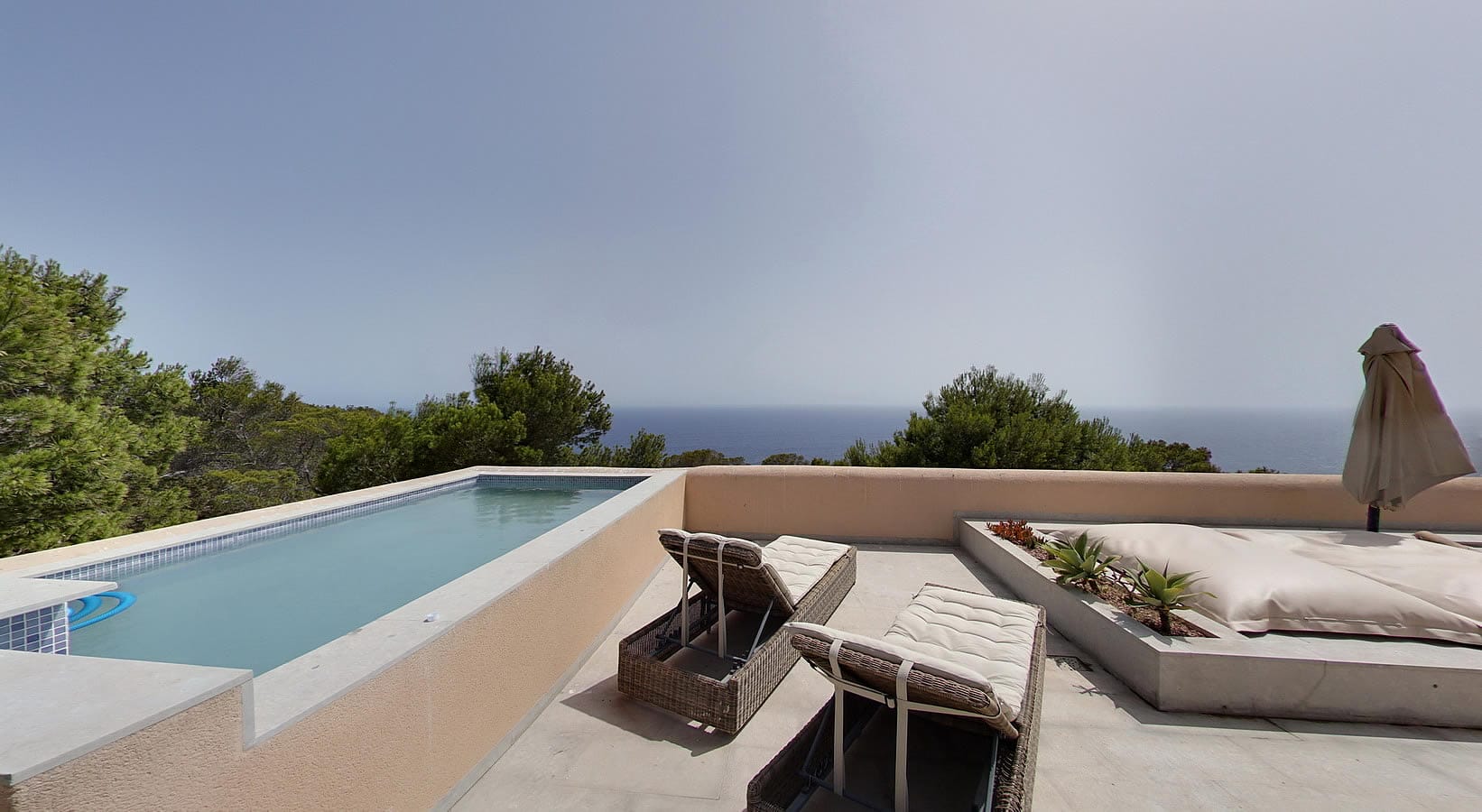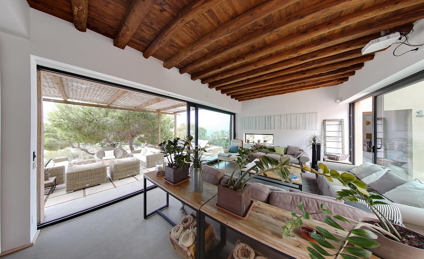 Hidden amongst the lush Mediterranean vegetation of La Mola, this luxury villa in Formentera is a jewel of technology in a great panoramic position, a revolutionary comfort and the latest modern amenities.