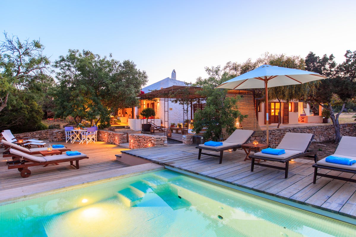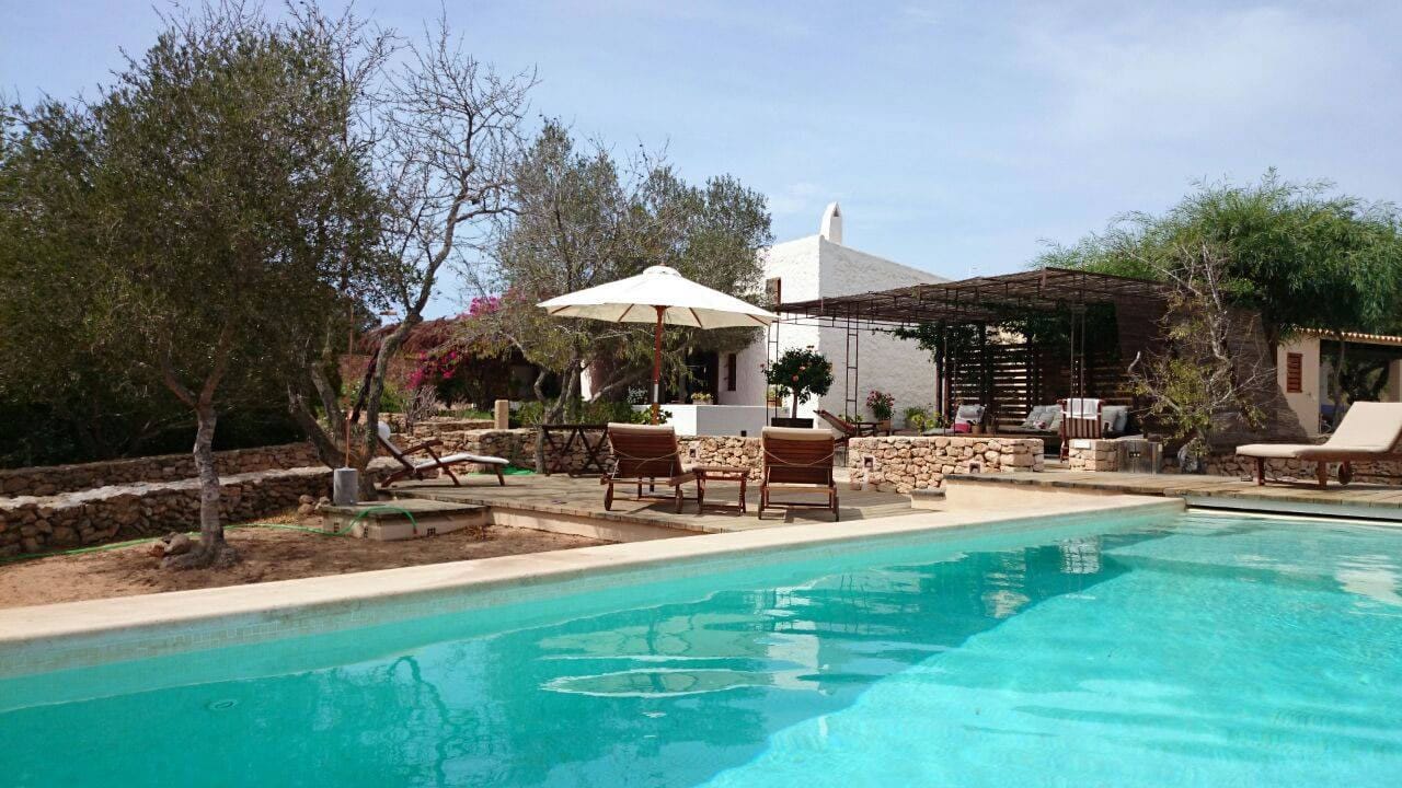 Located in a quiet rural area, with views across the bay to La Mola, the nearest village is a short drive away while nearby there is a shop with local products and a fine restaurant.