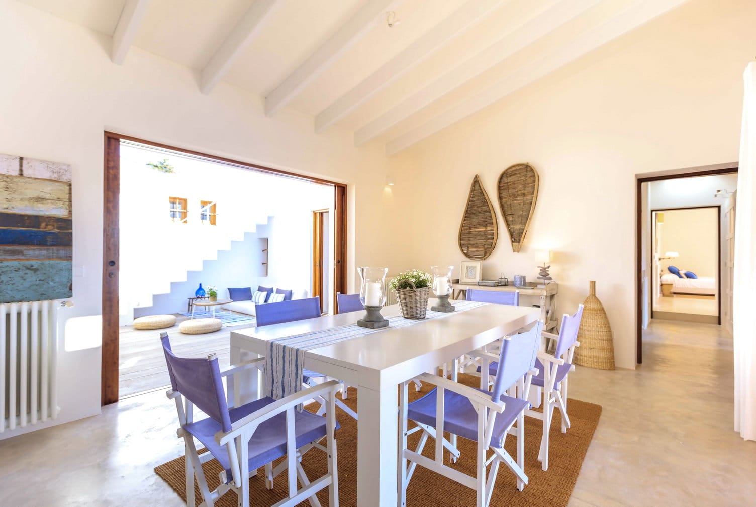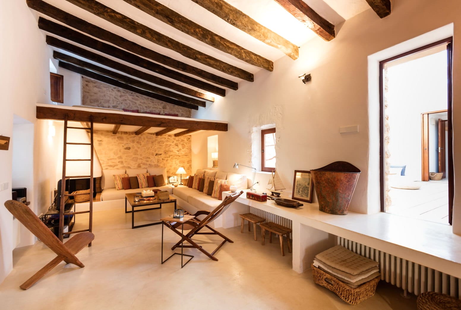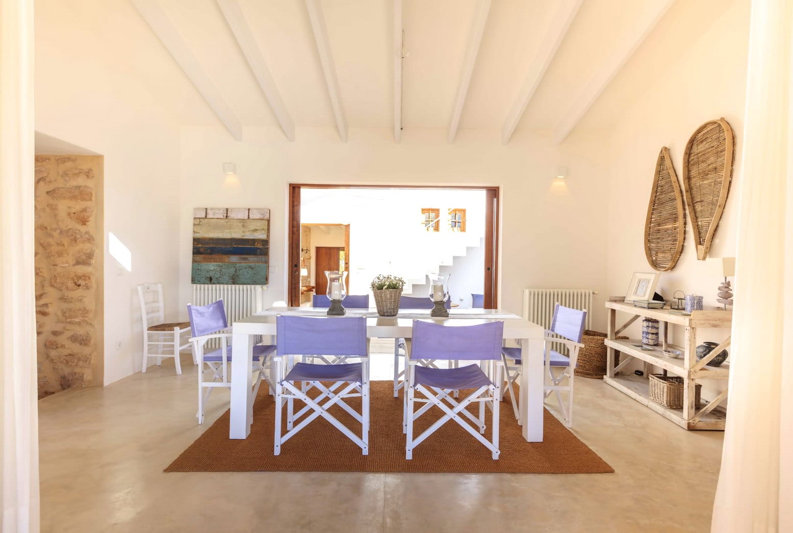 The dining room is accessed off the kitchen, with large table to seat all, and the lounge, which is housed in the older farmhouse part of the villa contains large comfy sofas, and a mezzanine chillout area.
