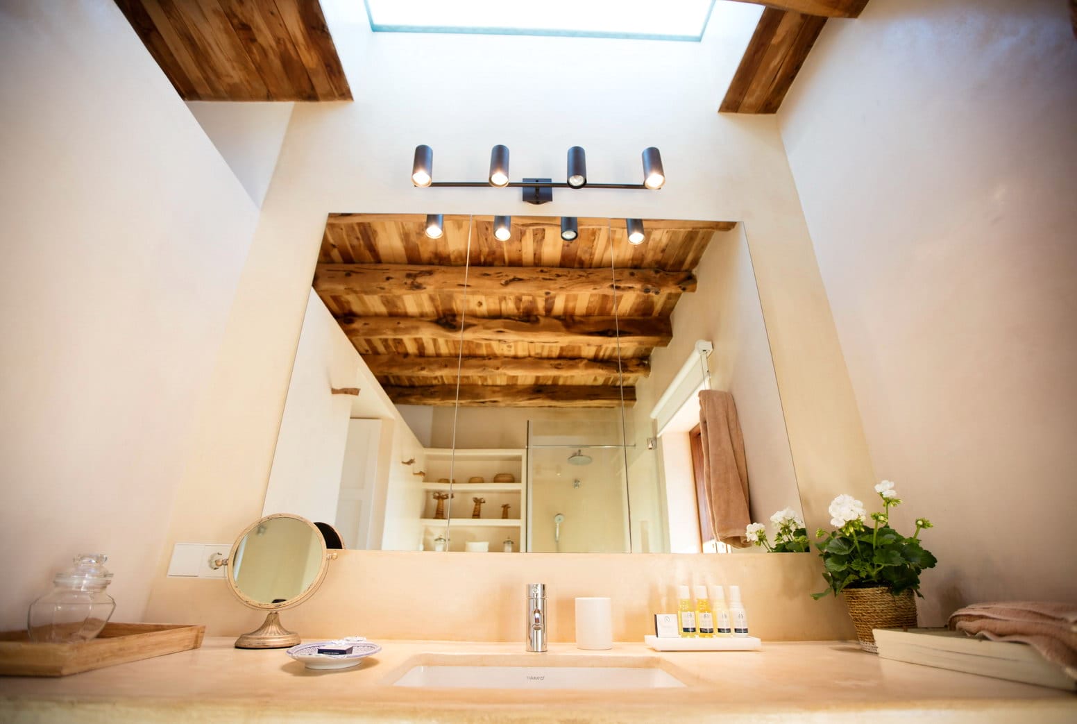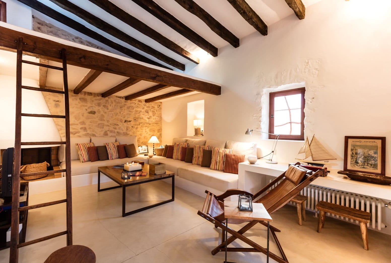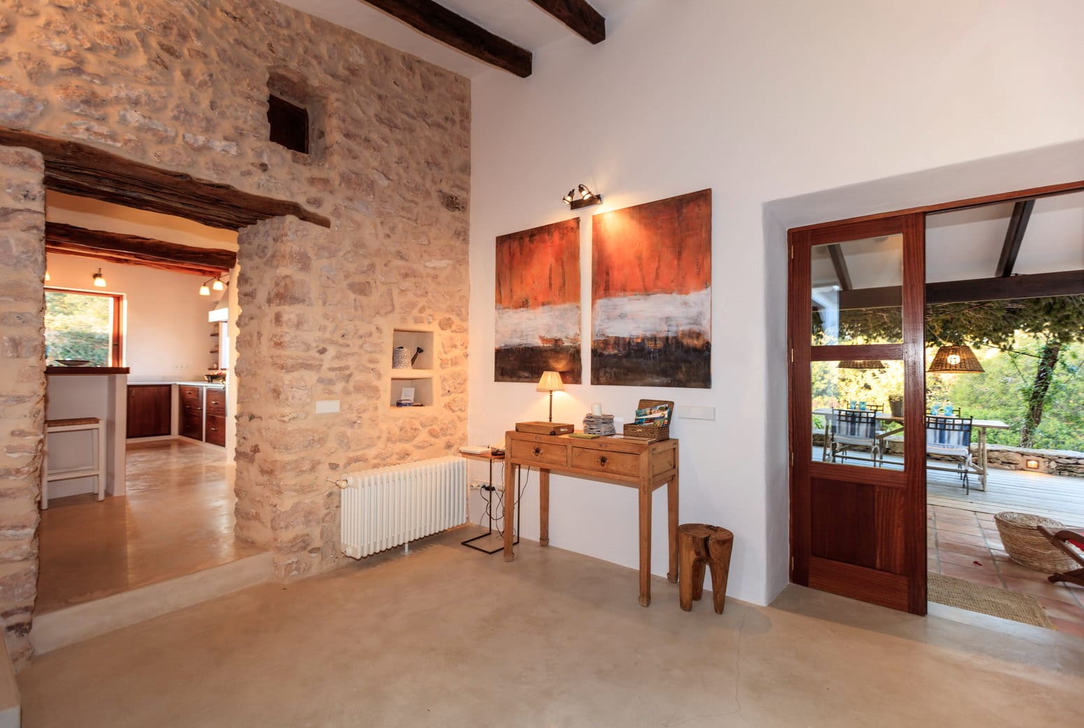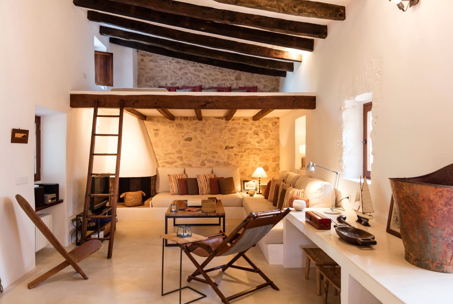 The dining room is accessed off the kitchen, with large table to seat all, and the lounge, which is housed in the older farmhouse part of the villa contains large comfy sofas, and a mezzanine chillout area.
