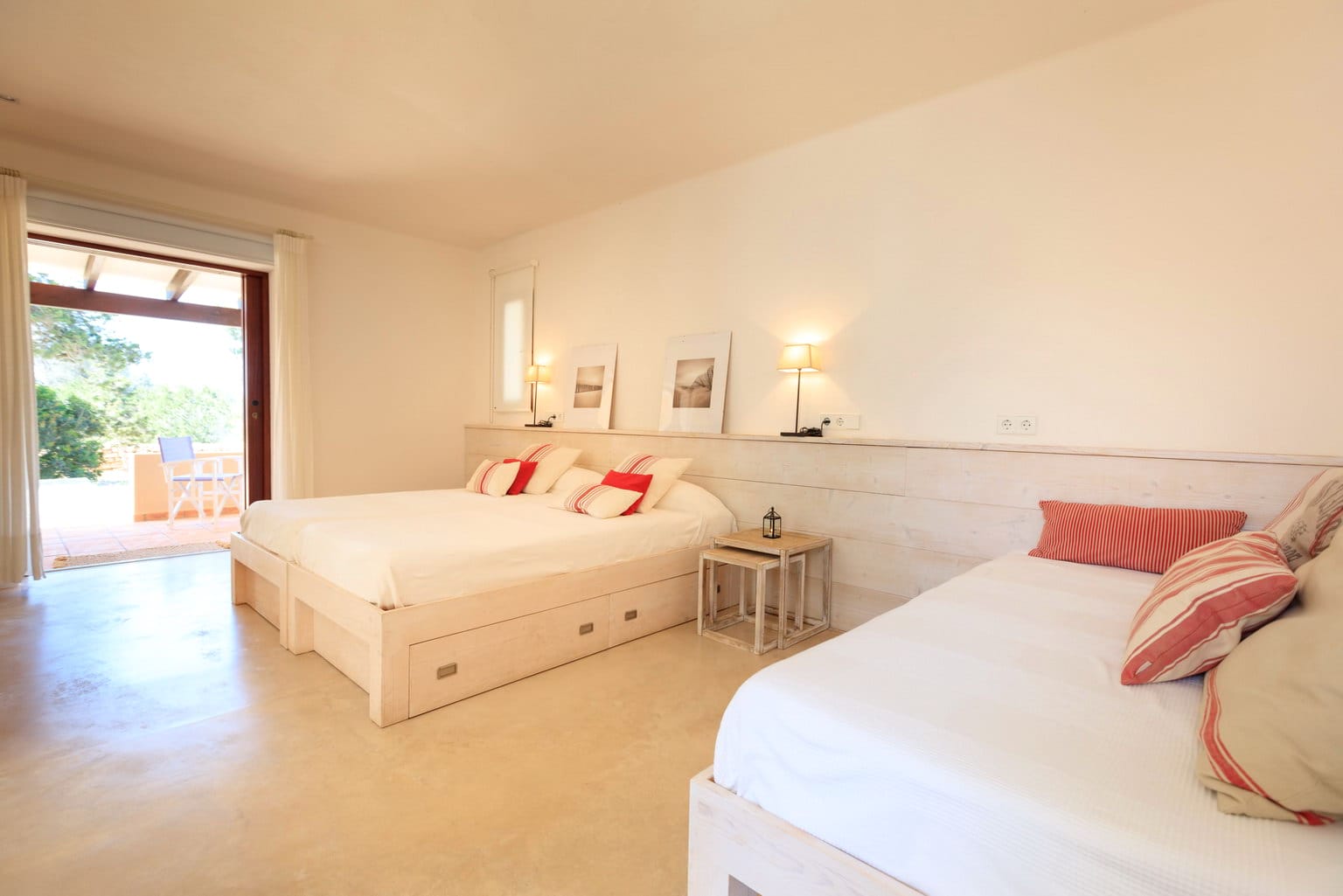 The Villa consists of 2 large double bedrooms, and a triple bedroom containing 3 single beds, with a fourth pull out bed if needed.