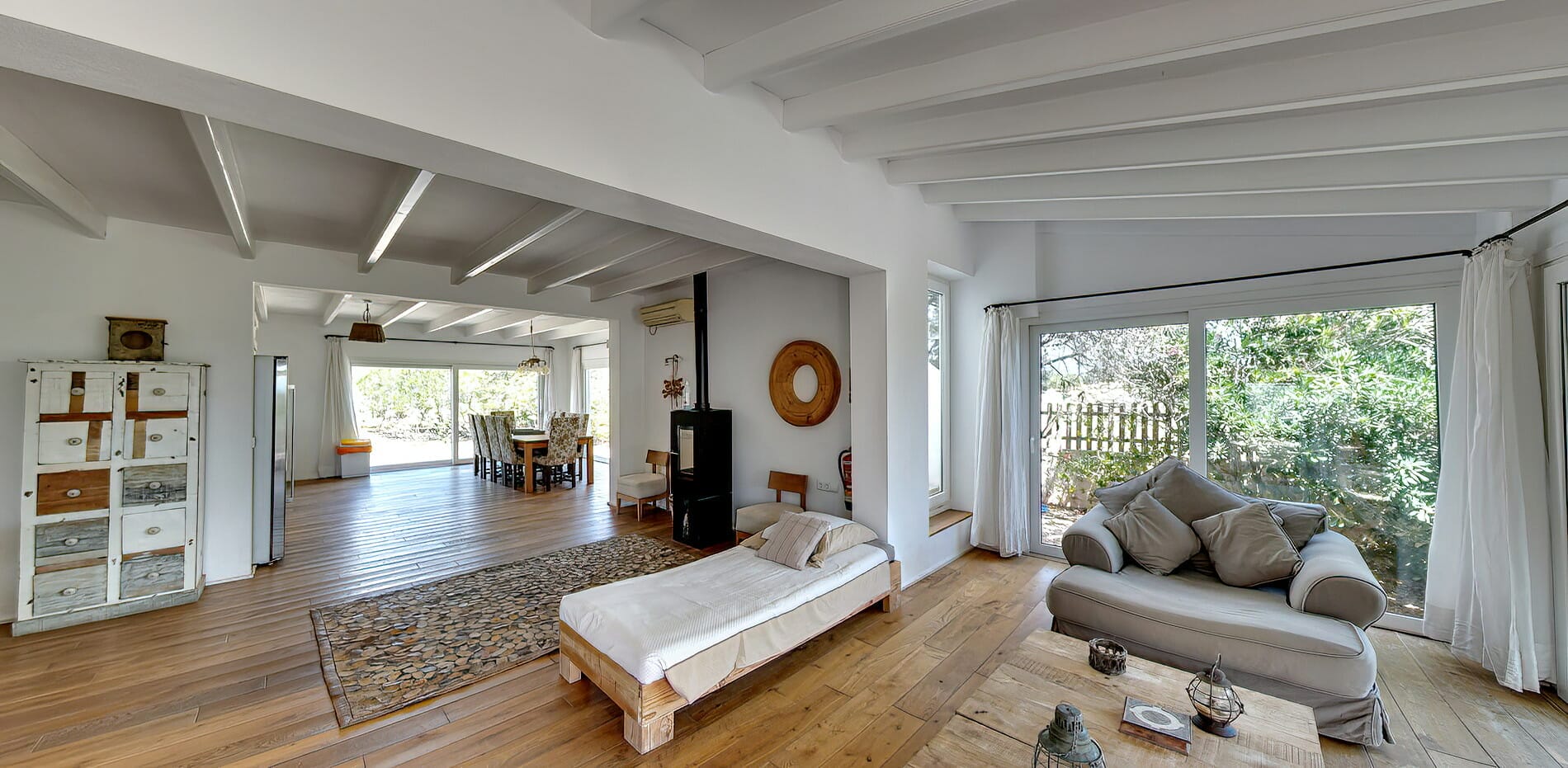 A home away from home, this villa has been created and furnished in a minimalist hippy chic Formentera style and has plenty of light and space.
